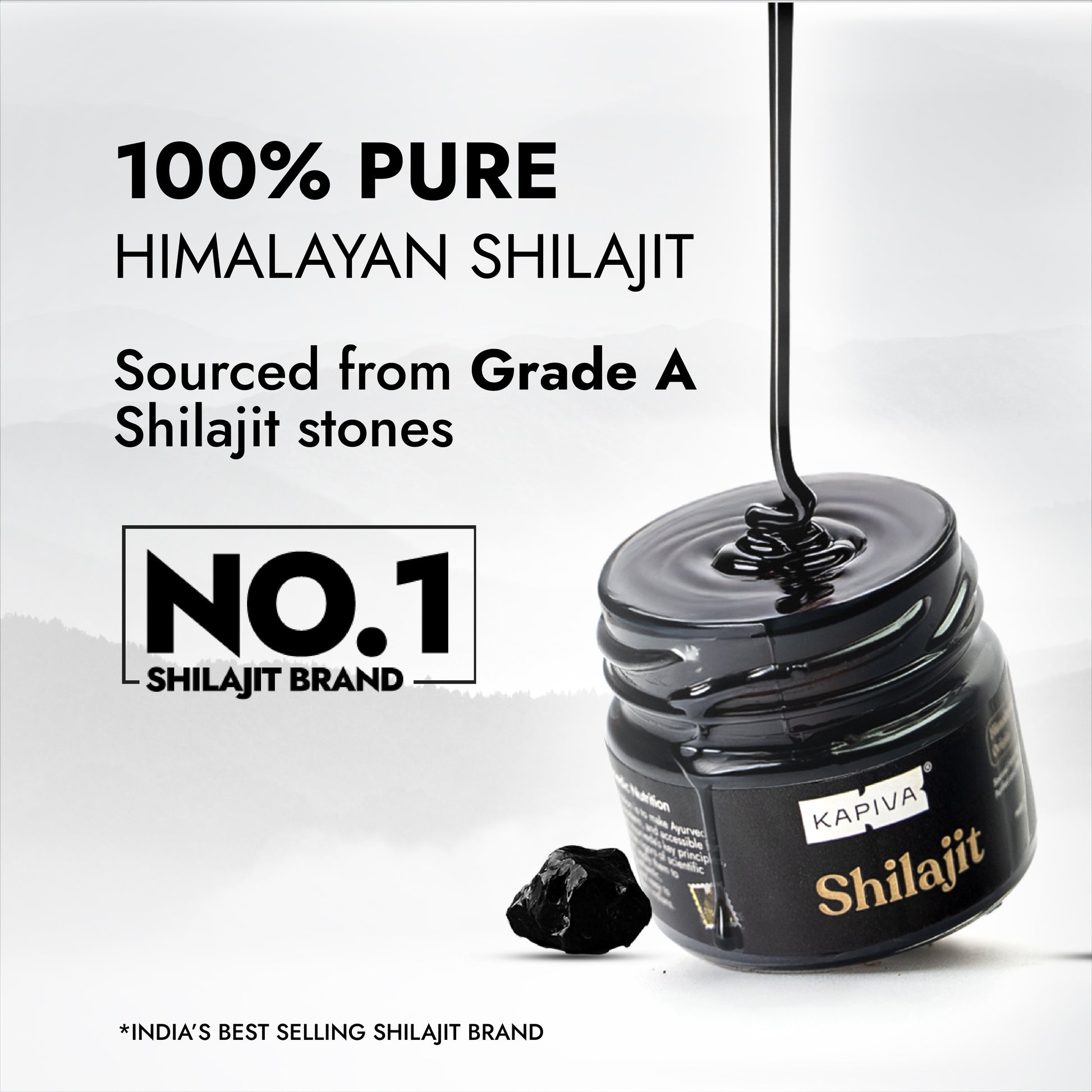 Sourced from 18,000 ft Himalayas and purified through a patented 7-step process, Kapiva Shilajit is clinically crafted for safety and performance, trusted by over 2M users worldwide.